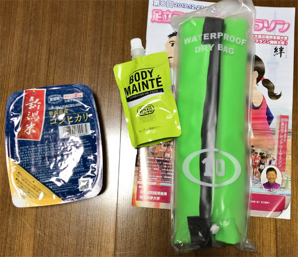 ****** 大会データ ****** ----- 大会寸評 ----- ハーフ(公認)、10km(公認)、3km、2km、1km親子マラソンと、本格派から家族連れまでまんべんなく楽しめる大会。 会場には食べ物系の屋台も多く出て、アットホームな雰囲気が楽しめる。 最寄駅は北千住駅とアクセスも良く、走り納めにもオススメ。 毎回変わる参加賞もなかなか楽しめるし、会場もさほど混雑しないし、以外と穴場な大会。 ----- 概要 ----- 種目:ハーフ(公認)、10km(公認)、3km、2km、1km親子マラソン 最寄り駅:東京メトロ 北千住駅から徒歩25分。 スタート時刻:10kmは10:30、ハーフは11:00。 参加者数:10kmは2000人、ハーフは6000人。 たぶん定員には達してないと思います。 完走率:不明。 制限時間:10km2時間、ハーフ3時間。 関門:ないみたいです。 参加資格:特にないようです。 受付方法:ゼッケンとチップは事前送付。参加賞は当日受け取り。 ----- コース・計測 ----- 計測方式:ランナーズRSタグ、一般も陸連も1枚。 計測内容:フィニッシュのみ。ネットタイム計測あり。 記録検索:昨年まではランナーズアップデートがありましたが、2017年はなくなったようです。 記録証:当日発行。クリアファイルに入れてくれる親切さが嬉しい。 ペースセッター:なし。 ゼッケン枚数:一般は1枚、陸連の部は2枚 ゼッケン番号順:不明。 コース:荒川河川敷 千住新橋 高砂野球場発着、ハーフは2回、10kmは1回の折り返し。 高低差は10kmの場合3km・7kmに土手への上り下りがある。 コース上トイレ:なし。河川敷だから既設トイレはありますが。 アップ場所:コ−ス上でアップできます。 キロ表示:1kmごと。 スタート順:プラカードに示された持ちタイム順に自主的に並ぶ。 ロスタイム:並ぶ位置によるが、少なめ。 給水:10kmは3箇所と十分、水のみはとポカリ+水があったようです。 水かポカリかの見分けがつきにくいのが難かな。 スペシャル給水:なし。 給食:こんにゃくの煮付けみたいなものが置いてありましたが、10kmで食べる人はまずいないでしょう。 というか、ハーフでも給食はいらないと思うけど。 私設エイドだったのかな?。 私設エイド:なし。 スポンジ:なし。 スタート前給水:あったかもしれな。よく見なかった。 ゴール後の飲食サービス:ゼリー、紙コップでポカリ。 ----- 環境 ----- 声援:沿道の応援は非常に少ない。ボランティアの生徒さん程度。 仮装:時期的にサンタコスがいたが、少なめ。 参加賞:今回は防水ドラムバッグ(容量10L)。前回はスポーツマフラー、その前はワンショルダーバッグ。 毎回変えていて、なかなか楽しい。 完走賞:なし。 参加費:4000円+手数料205円。 荷物預かり:あり。事前送付のタグにゼッケン番号を書いて渡す。混雑もなく好印象。 着替え場所:テントあり。使わなかったので混雑度は不明。 会場トイレ:仮設けっこうあり。大は並んでいたが、小はスタート30分前で待ち時間1分程度。 行列制御の案内をする係りの人もいて、これも好印象(混乱しないので)。 プログラム:選手名簿冊子が当日渡される。 写真屋:オールスポーツ。 招待選手:足立区出身の浅井えり子さんなど。 気温など: スタート前9℃、11時10℃、12時12℃、風はほぼ無風、湿度50%弱。 日差しがあったけど空気は冷たく、走るにはいい日和でした。 ----- 個人データ ----- 体重、食生活:前日の体重62.3kg 体脂肪率13.42%。 12/15に自分の腹を見てショック受け、糖質控えめダイエット中。 つくばマラソン以降、ろくな練習もできない中での参戦。 ウエア:アディダス黒長袖シャツ、NB高機能帽子、CW-Xロングタイツ、リストバンド、アディダス灰色やや厚め靴下。 シューズはDSトレーナー22。 ダメージは左足親指した母子球と左中指先端にマメ、左ふくらはぎ奥に線状の痛み、両足太もも前部膝上付近筋肉痛、左肩筋肉痛。 どれも重くはなかった。 シューズとの相性ですが、どうもDSトレーナーは足裏に厳しいようで、次のレースはハーフならイダテン、フルならイダテンかゲルフェか悩む、そんな感じです。 |