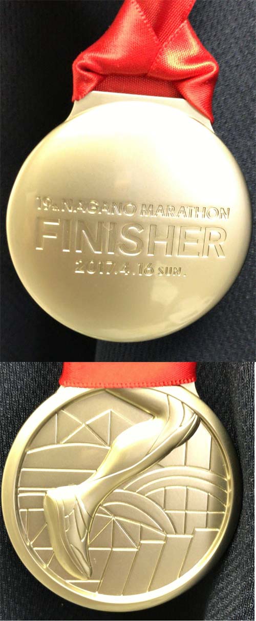****** 大会データ ****** ----- 大会寸評 ----- 相変わらず人気が高く、エントリーと宿泊先の確保に苦労する大会。 制限時間は5時間とやや厳しいこともあって女性には少々ハードルが高いが、気温的には初心者にも参加しやすい4月開催、長野という人気エリアということもあって今年も多くの人が参加した。 沿道の声援も多く、この時期の長野市はマラソン一色と言っていいだろう。 運営も相変わらず良く、全体的に参加して楽しい雰囲気が充満しているのは、この地域に根付いたマラソン文化がランナーを迎え入れてくれているからなのかもしれない。 5時間を切れる人は、ぜひ一度は出て欲しい大会である。 ----- 概要 ----- 種目:フルマラソンのみ 最寄り駅:北長野駅から徒歩15分。 スタート時刻:8:30。 参加者数:定員10000人。申し込み9273人。その差は未入金者かな。 完走率:77.86%でした。昨年は84.49%。おととしは87.59%なので、今年は暑さがこたえたようです。 制限時間:5時間。 関門:あり。 参加資格:満18歳以上。 受付方法:前日受付のみ。 ----- コース・計測 ----- 計測方式:ゼッケン裏のRTタグ。 計測内容:5kmごとと中間点。ネットタイム計測あり。ランナーズアップデート、応援ナビあり。 記録検索:あり。大会HPからリンクあり。 記録証:後日郵送。 ペースセッター:相当小刻みにあり。でも目立たないので今までレース中に見かけたことはない。 ゼッケン枚数:2枚。全員2枚です。 ゼッケン番号順:申告タイム順。 コース:長野運動公園発、南長野運動公園着。長野五輪の各施設を巡るコース。高低差は若干あり。 折り返し2箇所あり。 コース上トイレ:あり。ちなみに立ちション監視員がいます。立ちションはやめましょう。 アップ場所:あり。ゼッケンごとに分かれている。 キロ表示:1kmごと。 スタート順:ブロック順(申告タイム順)。 ロスタイム:Fブロック先頭で2分30秒程度。最後方で10分ぐらいのようです。 給水:あり、水とスポーツドリンク。終盤は相当小刻みにあり、全体的にテーブルも長く優秀。 スペシャル給水:あり。招待選手のみ。 給食:あり。剥きバナナ、そば饅頭、種取り梅干し、塩飴、あんぱんなど。アミノバイタルゼリーも1箇所だけどあった。 私設エイド:あり。規模は小さめ。 スポンジ:あり。たしか2箇所。暑いときは助かります。 スタート前給水:あり。たしか水だけだった。 ゴール後の飲食サービス:梅干しおにぎり、アミノバイタルの粉とペット500ml。 ----- 環境 ----- 声援: 沿道の声援は多く励みになる。特に善光寺付近とゴール付近は賑やか。全体的に温かい声援が続く。 仮装:禁止です。陸連主催のお堅い大会です。 参加賞:Tシャツ、例年通りVネック。 完走賞:完走メダルとフィニッシャーズタオル。 参加費:10800+556=11356円。昨年は10515円だったはず。 荷物預かり:あり。無料。番号札を荷物につける形式なので、荷物は一つにまとめましょう。予備の番号札は荷物に入れて、番号札が外れた時の照合用に使います。 着替え場所:体育館が更衣室。使わなかったので混雑度は不明。 会場トイレ:仮設多数、個室は男女共用のようです。それなりに混んでいた。 プログラム:立派な冊子と最終参加者案内など豊富。でも重くなるので受付時に受け取るのはちょっと嫌かな。 写真屋:オールスポーツ。 招待選手:地味目(失礼)の選手がいらしていました。その他には浅井えり子さんなど。 TV企画との連動でオリエンタルラジオの藤森さんも走っていましたが招待ではないのでJブロック(たしか)からだったようです。 そして、最近欠かせないのが高橋尚子さん。今年もコースでハイタッチしてくれました。 気温など:晴れ。風は1.5mから4m、気温14.5度から13時に22.3度。暑めでした。 半袖で十分な暑さ、でも風は涼し目で助かりました。 ----- 個人データ ----- 体重、食生活:前々日の体重61.6kg、体脂肪12.4%。 直前に風邪を引いたが、まあまあの体調。 今回の目玉はシューズ、練習用のGT1000でどうなるかを試しました。 結果、安全ではあるけど乗れない感じ、ゲルフェザーかエンペラーTRに戻すか、悩むところです。 ウエア:NIKEグレー帽子(そろそろ寿命か)、ミズノ白半袖シャツ、アディダスボックスランパン、ミズノ赤のワンポイント厚めの靴下、NB白手袋、リストバンド、シューズはGT1000 25.5cm。 ダメージは左足2箇所と右足指1箇所にいずれも浅いマメ、左は親指の付け根にできたり全体的に珍しい位置のマメだった。やはりシューズが違うと摩擦部分も違うのだろう。 両足全体と腰に筋肉痛。最近おなじみの両足アキレス付近が軽く済んだのはシューズのおかげだろう。 左足裏がうっすら痛い。 あと、翌日以降に左足爪半分くらい水が溜まり、爪の付け根から若干出血した。 その後、爪半分が出血で真っ黒に。遅れて出血したみたいです。 |