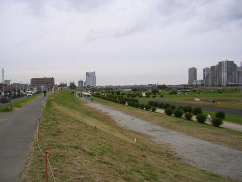 今回が第二回の大会ですが、それまでは別の場所で開催していて昨年から場所と名前が変わっただけらしいので、昨年も今年も運営はスムーズでした。 場所は多摩川河川敷、最寄り駅は南武線鹿島田から15分、制限時間は6時間です。 例年、11月はフルを走っているのですが、昨年は大田原かつくばか迷ったあげく、近いという理由でこの大会に出ました。 昨年は序盤から調子が出ず(アップ不足だったのか?)、リタイヤすることだけを考えてダラダラ走るという状態でしたので、今年は気合いを入れて挑みました。 一年前に長年の課題(ちと大げさ)だった10km50分切りをようやく果たしてから、5月に46分、10月には43分と順調に記録を短縮していて、我ながら好調です。 しかも、一年半前のEKIDENカーニバルに遊びに行った時(出場はしなかった)にマラソン仲間からアドバイスを貰った内容が、どうやら最近になってようやく理解できたような気がします。 私のフォームは「大きな筋肉で走る」、「足は後ろで裁く」ようにすれば、もっと速くなるというアドバイスだったのですが、一年半かかってようやくその意味が分かってきたような気がします。 今までは足を使って動いていたのが、このアドバイスでようやく体を使って走るようになれたような気がします。 先週の、ねりま光が丘10kmがニューフォームでの初めての実践の場になったのですが、結果は自己ベスト19秒短縮と今ひとつパッとしない数字ではありましたが、一年前にようやく50分を切ったランナーとしては上出来の42分55秒でした。 今回は、そのフォームで初めてフルを走るのですから、正直大幅な記録更新を狙っていました。 自己ベストは今年1月の3時間40分台、本気で3時間半を狙う気持ちで出場しました。 最近、またシューズ選びで悩んでいるのですが、今回は冒険してライトレーサーという軽いシューズでフルを走ってみることにしましたし、フォームも変わっているはずだし、いろいろ楽しみな大会でした。 5時半に目覚ましに起こされ、やれやれ寝坊しなくてよかった、と一瞬気を緩めたら、次の瞬間世の中は6時半になっていました・・・。 けっこう焦りました。 まあ、まだまだ時間に余裕はあるのですが、一応自分が決めたタイムスケジュールから遅れると嫌なものですし、急いで朝食を流し込みトイレを済ませて家を出ました。 幸い、計画通り7時8分の小田急線に乗れて、登戸で乗り換えて鹿島田駅に着きました。 昨年も出ているので土地勘はある・・・はずなのですが、なんだかよく分からないや。 小規模大会でまだ時間も早めなこともあって、ランナーの姿が見えません。 他力本願で方向音痴な私は、いつも駅から会場までランナーの後ろ姿を頼りに移動しているので、こんな時はうかつに移動しない方が安全です。 幸い、前方に女性ランナーが見えたのでついて行こうとしたら、その人もうろうろしていて道が分からない様子。 そのうち女性が交番に向かったので、たぶん道を聞いているんだろうと読み、しばらく道路の向かい側で待っていました。 (もう、全部お任せ状態。自分で探そうなどという気持ちは微塵もない) やがて女性が出てきたので同じ方向に歩いているうちに、なんとなく昨年の記憶が戻ってきました。 結局、会場についたのは8時半前とスタートの1時間前、寝坊したけど、無事予定通りの時間に着けました。 荷物預かりは貴重品のみの大会なので、昨年は適当に荷物を放っておいたのですが、今年は天気予報が曇り一時雨の予報でしたので荷物テントに置かせてもらいました。 ウエアですが、気温から考えて下はロングタイツで決定していたのですが、悩んだのは上をどうするかです。 小雨が落ちるようなら長袖+半袖にするつもりでしたが、曇っているとはいえ雨は大丈夫のような気がします。 この大会はスタートラインを中心に河川敷を3往復半する大会ですから、何回もスタートラインに戻ってきます。 しかも荷物はコース脇のテントに置きっ放しですから、もし途中で寒くなったらテントに戻って着替えるという作戦にして、長袖一枚にしました。 気温が低い時期なので、帽子と手袋は必需品です。 荷物預かりがないと盗難の心配がありますが、スタートぎりぎりまでウインドブレーカーを着ていられるというメリットもあります。 ちょうど一週間前に30km走をしたらけっこう足にダメージが残って、大会直前の3日間は全く走らず休養に当てていました。 足の状態を確かめるようにアップしましたが、特に痛みもなく良い感じです。 すこし風邪気味っぽい気がしますが、まあ気のせいにしましょう。 ![]() 一番上が土手、一部ここを走る場所もあります。 その右の砂利道にそって大会本部があり、さらに右(木の間に自転車が見える所)がコースです。 ![]() このグラウンドがスタート/ゴール地点です。 ![]() 同じくグラウンド。ゴール付近ですが、まだなにもありませんね スタート時間は9時半ですが、結構間際になっても受