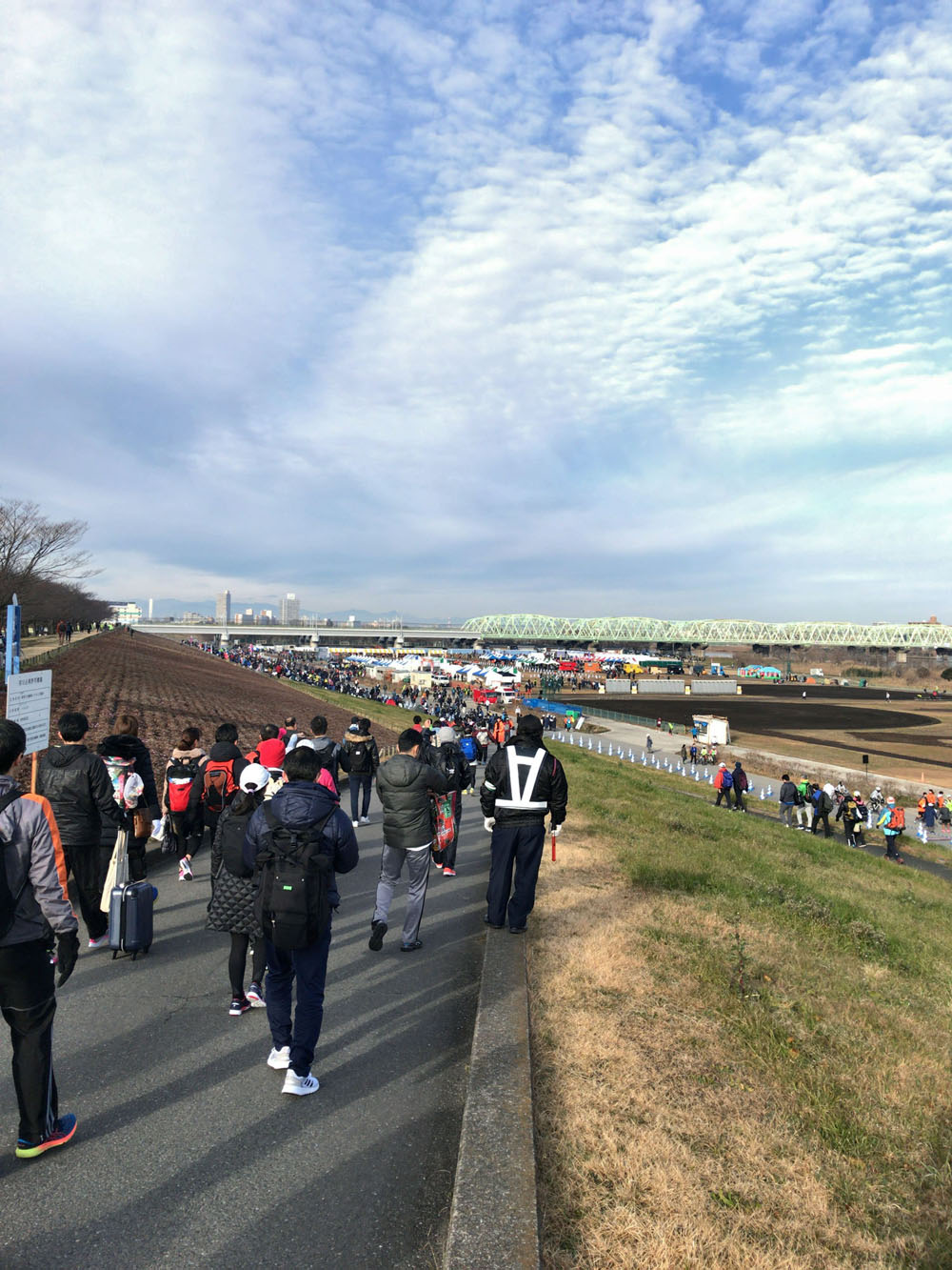 【エントリーから出場まで】 エントリーは7/12、恒例なのでためらいもせずRUNNETから申し込みました。 出るかどうか考えることはなく、もう出るのが当たり前です。 年に一回はハーフはしらなきゃという気持ちと、家から近いのと、1月末の勝田全国マラソンとの間隔と、ライバル大会が少ないことなど、出ない理由がないのです。 参加費高目がちょっと難ですが、昔からそうなので慣れちゃいました。 今回の変更点というか気がついたところは、今年もフルがあるのと、参加賞が長袖になりました。 また当日受付もあります(昨年はどうだったかな)。 秋に台風で河川敷が水に浸かった影響で中止になった大会が多く、本大会が開催できるか心配でしたが無事開催されました。 荒川は台風で堤防を越流したのか堤防外の水が溢れたのか知りませんが、河川敷の野球場などが水没してヘドロにまみれ、野球場などは年明けにようやく再開したそうです。 12/26、ゼッケンとチップが届きましたが第三ウエーブで下流と、負け組的な感じ(被害妄想)。 いまひとつテンションが上がりませんが、遅いから後ろのウエーブではないそうです。 でも最終ウエーブは格落ち感がある気がします。 最近は年にフルを4、5回走り、ハーフはこの大会だけです。 珍しく昨年12月初旬にハーフに出たばかりなので(MINATOシティハーフ、抽選に当たったので出た)、肩の力を抜いて出られました。 ちなみに10km大会にはもう何年も出ていませんが、赤羽月例に年1、2回出ているのでそれで十分かな。 (赤羽月例もマラソン大会と銘打っているけど、雰囲気的に練習会だと私は思っている。事前申し込み不要、雨天中止などで気楽という意味で。) 雨予報で気温も最低3度・最高6度と低めの予報でしたが、私の晴れ男伝説はまだ続いているようで日を追うごとに雨の確率は下がり、気温も当初よりは上がり傾向になってくれました。 正月は元旦から30kmジョグを3日連続で走ったらアキレス腱が痛くなって、それから一週間しか経っていませんので、ほぼ痛みは取れたとはいえ不安は残ります。 今月末は勝田全国マラソン(フル)が待っているので、ここで脚を壊すわけにはいかない。 でも欠場するほどのダメージは残っていないので、不安を感じながらも出場しました。 唯一の無欠場大会(申し込んで出ないことが一回もない大会、故障期間を除く)なのもあって、頭の片隅で聞こえた「欠場しちゃえ」という声は無視しました。 体調は脚以外は万全、どんなレースができるか楽しみのような怖いような。 |