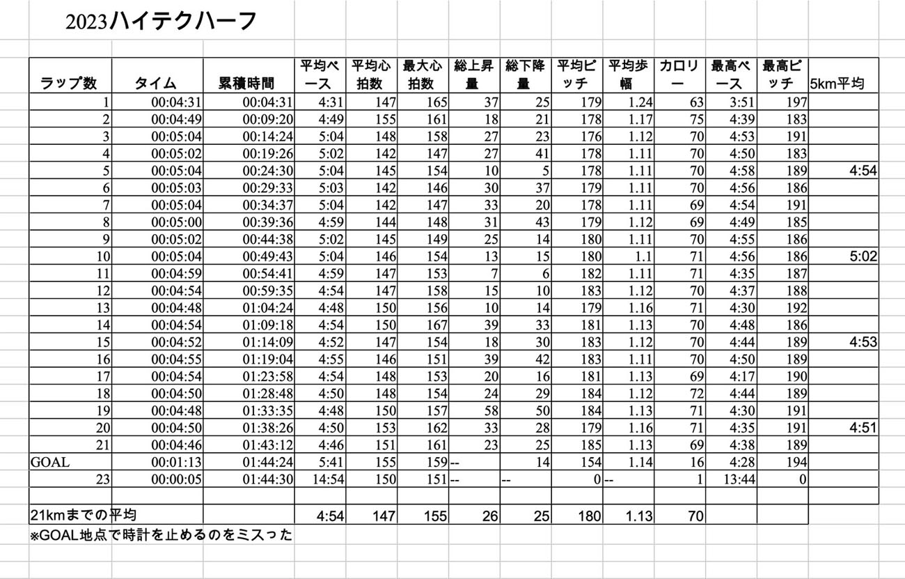 【タイムと写真】 ![]() 1時間43分56秒(ネットタイム) 2021年11月の世田谷246ハーフがストライド124cm、ピッチ182、平均4分41秒/km、1時間40分58秒。 今回がストライド113cm、ピッチ180、平均4分54秒/km、1時間43分56秒。 (表のデータはGPSウオッチのもので、フィニッシュして時計を止めミスったので44分過ぎています) 世田谷246ハーフに比べてピッチも落ちているけど、それ以上にストライドの落ち込みがひどい。 ピッチもストライドも安定したひどいなので、体調や体力ではなく技術的な問題の気がします。 ![]() 会場に向かうランナー、新荒川大橋付近は信号があって歩道尾が細いので大渋滞します。 遅くなると酷くなるので、早めに移動しましょう。 赤羽岩淵駅から行くと道路の反対側なのであまり混みません。 私がいる北本通りの下流側だと混雑が少ないので、横断してこっち側に移動しておくと少し遠回りだけど混雑を避けられます。 ![]() 会場が見えてきました。 以前は左側の土手の階段に陣取るのが定番でしたが、コロナ対策で右テント群奥のランナーエリアからの出入りが混みそうなので、あまりランナーエリアから出ない方がいいかも。 スタート前の整列もランナーエリア内で行われます。 再入場はリストバンドが必要です。 ![]() たしかフィニッシュゲートは手前のラインあたりに設置されたはず。 画面奥(上流側)に向かって走ります。 右のエアゲートはスタートでもフィニッシュでもなく、単なる会場入口です。 その奥のミッフィーらしきものとお城らしきエアドームはキッズエリア、子供の遊び場です。 ![]() 会場入口です。 ![]() まず検温所で温度を測ります。 まだ8時過ぎ、第一ウエーブスタートまで1時間半近くあるので人も少ないです。 ![]() メインステージ、昔はレース後に芸能人のチャリティオークションとかがありました。 まだこの辺りはランナーエリアではありませんので応援の人も入れます。 ![]() 紺色のジャケットのお兄さん2人はレッドブルを配っています。 背中のリュックに入っているので仲間に取ってもらわないといけないのが笑えます。 ![]() 物販店舗が出ていましたが、コロナ対策で飲食店舗は自粛のままです。 ![]() ここからはランナー専用エリア、事前に書いた健康チェックシートを渡してリストバンドを受け取ります。 ![]() こtれがリストバンド、結構丈夫で外れたりはしません。 薄いチップのようなものが埋め込まれていましたが、ランナーエリアから出なかったので機械で読み取るなどの機能があるかどうかは不明です。 ![]() 会場風景、トイレは男女共用と女性用、要するに個室です。 このほかに男子小用が違うところにあって、スタート30分前でもさほど混んでいませんでした。 ![]() 大型トラックが荷物預かりです。 なぜ発着が同じ場所で移動する必要がないのにトラックなのか不明ですが、雨対策かな?。 ゼッケン末尾によって10台用意されていました。 引き取りはさほど混んでいませんでしたが、出場ウエーブによっては結構待つかもしれない。 そんな感じの手際でした。 ![]() ここからはレース後、がっかりしているので写真も少なめ。 ビジョンカーが来ていました。 そういえば前回あたりからYoutubeで配信もしています。 まあスタートラインとかなので、そんなに見る人もいないかもしれませんが雰囲気は伝わります。 アーカイブも残っているのでお暇でしたらどうぞ。 こちら ![]() キッズエリア、子供の遊び場です。 昔から女性ランナーへの配慮があって今も引き継がれているのですが、かつて谷川真理ハーフマラソンだったからでしょう。 ![]() フィニッシュ後にもらったアクエリアス、シューズはNIKEズームフライ3。 シューズについている輪っかは計測用のもので、両足につけます。 使い捨てなので返却不要です。 結構丈夫だし邪魔にもならないけど、私が出る大会ではここしか採用されていません。 記録計測が大会独自なのでレース後すぐには確認できなくて不便でした。 ![]() 完走メダル、金色です。 ![]() 裏側、デザインは去年とほぼ同じかな。 ハーフでメダルはどうなのかしら。いらない気がします。 それより参加賞をもう少しいいものにして欲しい。 ![]() その参加賞の細長いタオル、たぶん去年と同じデザインで色違い。 開ける気にもならず、このまま箪笥の肥やしかな。 ![]() タオルの続き。 ![]() 恒例のヤマザキランチパック、1月1日発売の新製品でした。 味は、まあカルボナーラ的な味で普通に美味しかったです。 毎回消費期限が翌日と短いのは大量に調達するからなのか、安く仕入れられるからか。 |