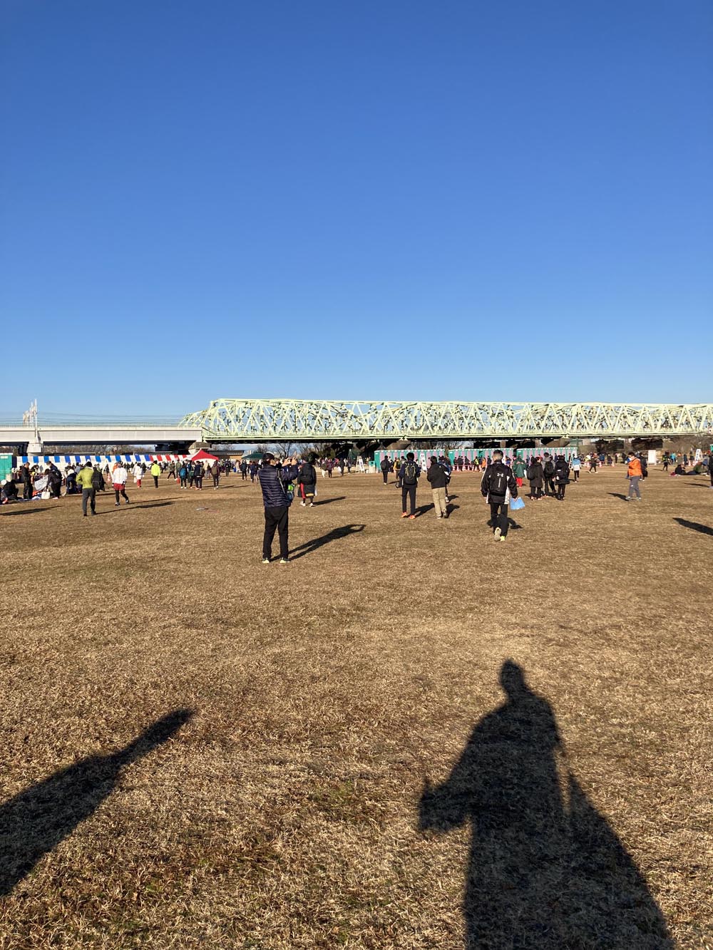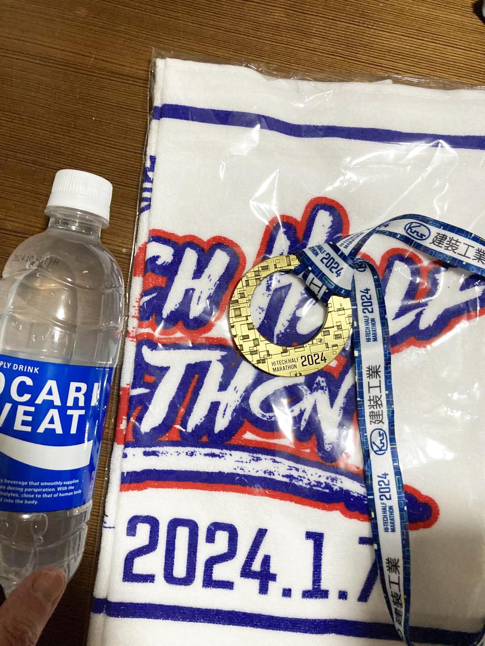****** 大会データ ****** ----- 大会寸評 ----- 新年の走り染めとして定着した大会、来年の25回大会を機に東京ニューイヤーハーフマラソン(仮称)に改名が予定され、ハイテクハーフマラソンとしては最後となった。 コロナ禍前は上流と下流の2コースで各3ウエーブの計6組だったが、今年も昨年同様参加者(ハーフの部)を6000人と少なめで上流コースのみであった。 運営は手馴れたもので、いつも混雑する駅からの移動路も違うルートの案内をするなど工夫されていた。 河川敷なので景観に乏しく、沿道の声援もわざわざ応援に来てくれた走友会がいる程度でさみしいが、場所柄致し方あるまい。 風が出たら逃げ場がない、雨が降ったら会場内がぬかるむのも難だが、これも河川敷大会の宿命だろう。 猫ひろし選手などゲストランナーも多く華やかさも感じられ、都内からのアクセスも良く、新年走り染めには最適だ。 市民マラソンの完成系の一つと言って良いだろう。 河川敷コースを毛嫌いする人もいるが、一度は出てみて欲しい大会だ。 ----- 概要 ----- 種目:2kmペア、10km、ハーフマラソン 最寄り駅:京浜東北線 赤羽駅から徒歩15分、南北線 赤羽岩淵駅から徒歩7分。 歩道が狭く信号待ちなどで渋滞して会場着まで時間がかかるので、赤羽岩淵駅からがおすすめ。 また早めの会場入りを心がけたほうがいいです。 スタート時刻:ハーフの部は9:30から10分刻み。 参加者数:定員 ハーフ6000人、10km1500人、2kmペアラン200組。 完走率:不明だが相当高いはず。 制限時間:ハーフの部は2時間半。 関門:あり、ハーフは折り返しが11:15なので、最終ウエーブスタートだと1時間15分。 参加資格:高校生以上。 受付方法:事前郵送なので当日は受付不要。 申込方法:先着順 ----- コース・計測 ----- 計測方式:独特の使い捨てのタグを左右の靴紐につける。返却不要。 帯状のチップを輪っかにして両面テープで固定する方式だが、接着力が強いので外れる恐れはない。 計測内容:ネットタイムとグロスタイム。ハーフでの10km地点計測は無くなったがセンサーは置いてあった。 不正ランナー検出のためと思われる。 記録検索:大会HPより。 大会数日後、公式HPにPDFで結果一覧が公開される。 記録証:web発行のみ 大会直後はタイムのみだが、1週間後に順位掲載の記録証がダウンロードできた。 (HPに記載はなかったが) ダウンロードは2月上旬までなのでお忘れなく。 不参加時の計測タグ返却封筒:なし。返却不要のチップです。 ペースセッター:なし ゼッケン枚数:一般は1枚、陸連は2枚のようです。 ゼッケン番号順:不明 コース:荒川河川敷 新荒川大橋野球場スタート、幸魂(さきたま)大橋先を折り返すコース。 高低差は土手に上がる場所と折り返し付近程度で、比較的フラット。 コース上トイレ:仮設はなし、野球場などの既設があるかもしれない。 アップ場所:ランナーエリア内の野球のグラウンドと、コースより下流部分。 キロ表示:1kmごと。 スタート方法:4ウエーブに分けられ、陸連選手は第1うえーぶ、それ以外は予想タイムで振り分けられる。 具体的にどのように振り分けているかは不明。 昨年は第2ウエーブで今年は第3ウエーブだった(申告タイムは同じはず)。 ウエーブ内でのブロック分け:タイム順のプラカードに並ぶ。 ロスタイム:第3ブロック前方だと10秒未満、並ぶ場所によるが4ブロックに分けられているのでさほど多くはないはず。 給水:5km以降、計5回。手前がアミノ酸、奥が水のテーブルだった。 テーブルは短めなので取り損ない注意。 量はおおむね少なめだった。 スペシャル給水:なし 給食:なし 私設エイド:なし スポンジ:なし スタート前給水給食:なし ゴール後の飲食サービス:ポカリのペット、ランチパック。 ----- 環境 ----- 声援:河川敷なので少ない。走友会の人などが来ている程度。 仮装:沿道が寂しいのもあって少なめ。 参加賞:タオル、昨年までのマフラータオルからやや幅広めになった。 完走賞:完走メダル、ヤマザキランチパック(菓子パン) 参加費:6800円+手数料374円=7174円 荷物預かり:あり、ビニール袋にゼッケンのシールを貼って預ける(いずれも事前送付) 着替え場所:テントあり。使用しなかったので混雑度は不明。 会場トイレ:仮設多数、第1ウエーブスタート直前(9:20zたり)からは混んでくるが受忍限度内。 事前郵送物:パンフレット、ゼッケン、安全ピン、計測チップ2枚、荷物預かり袋とそれに貼るナンバーステッカー。 大会プログラム:事前にパンフレットが送られる。 写真屋:オールポーツ 招待選手:岩出玲亜選手 ゲストランナー:猫ひろしさん、SUIさん、ワイナイナさんなどだったようです。 気温など: 9:00 晴れ 8.5℃ 52% 北の風 3m/s 11:00 晴れ 10.7℃ 44% 北の風 3m/s ----- 個人データ ----- 体重、食生活: 前日の体重57.45kg、体脂肪率7.8%。 ウエア: アディダス長袖黒、CW-Xロングタイツ、インナーは安物ブリーフ、リストバンド、NIKEグレーキャップ、ダイソーの白靴下、シューズはヴェイパーフライNEXT%2。 ダメージ: あまりなかったかな。腰の筋肉
