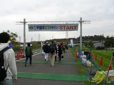 ![]() 毎年、気になっていた大会でしたが、仕事の関係で月1回程度しか大会に出られないこともあって今まで出られませんでした。 ハーフとしてはかなりの大規模(8000人)の人気大会で、おそらく1月の谷川真理ハーフに次ぐ人気でしょう。 谷川ハーフは場所が荒川河川敷と手ごろだし芸能人も出るし参加賞のTシャツも評判いいし、大会運営はともかくとして、人気があるのはわかります。 でも、なぜ手賀沼がこんなに人気があるのか、参加するまでずーっと不思議でしたが、参加してみてその理由が分かりました。 とにかく、全てにおいてスムーズ。 駅から会場までの道も歩きやすく分かりやすいし、会場も陣地を設営する場所がたくさんあるし、臨時の水場も用意されてるし、受付から荷物預かり、スタートラインまでの動線が自然にレイアウトされていて人の流れがスムーズ。 係員・ボランティアさんも、手際が良く、給水もコースガードも充分な人数だし、トイレの数もまあ合格点(トイレはもっと多くても良いけど、まあそれはキリがないので)。 歩道を走る場所では、ランナーが電柱にぶつからないよう電柱1本1本目立つ注意書きが張り付けてあるし、とにかく全てにおいて運営がお見事。 それと、沿道の応援もこの類いのコースにしては多めでうれしいし、まあ参加人数が人数だから最初の1kmまでは混雑してタイムは狙いにくい大会ではあるけれど、思っていたよりも走りやすいし、なるほど、これなら人気があるのはわかる。 (しかも今年は道路が舗装したてで綺麗だったので、よけいに好印象) さて、走りの方ですが、せっかくの10月なのに走り込みが不足していて、20km走を1回した以外は、すべて10km台の練習しかしていませんでした。 練習不足と鼻風邪ぎみで、今一つ気が乗らなかったこともあって、当日朝まで参加するかどうか決めかねていました。 幸い、寝坊もせず体調もそこそこ良かったので千代田線に乗り込みました。 最寄り駅は北柏駅、そこから徒歩10分で会場です。 そういえば、千葉の大会はここが初めてです。 手賀沼って、意外に近いというのが第一印象。 受付も荷物預かりも分かりやすい場所だし着替えテントもあるし陣取る場所もあちこちにあるし、一人で行っても安心でした。 軽くアップした後、給水所で喉を潤し、スタートラインに並びました。 (スタート前に給水を受けられる大会は珍しい。他の大会も事故防止のため見習ってほしい。) 号砲が遠くの方で鳴ったらしく、しばらくしてから花火が上がって、と、まあ、いつも通りの後方スタートの光景です。 スタートはゼッケン順ですが、ゼッケンがタイム順なのかどうかはわかりませんでした。 ちなみに私は3500番台、号砲が鳴ってからも、しばらくはピクリとも列は動きません。 まあ、ここら辺はいつも通りの風景ですが、これだけ列が動かないのは珍しい。 あたりまえですが正式タイム(グロスタイム)で良い記録を狙う人は、こういう大規模大会は出ちゃダメですね。 こりゃコースは大混雑だろうなぁ、と思いながらようやく動き出しました。 ゼッケンは胸の1枚だけ、計測はトルソータグでした。 天候は曇りのち薄日が射してきましたが、気温は低めで走りやすい天気でした(寒い程ではなかった)。 さすがマンモス大会だけあって、写真屋も3社が来ていました。 (まだもらってないけど完走証も写真入りだそうです) スタートしてからしばらくは狭くて走りづらいけど、やがてコース幅も広くなって、そこそこ走りやすい状態になりました。 ありがたいことにキロ表示は1kmごと、ただ1kmの表示はなかったのか混雑していて気がつかなかったのか、気がついたら2km地点でした。 2kmまではキロ5分15秒、その後は5分5秒ぐらいで走りました。 今回は前半飛ばして、後半はバテてもいい、という実験的走り作戦でしたが、10kmで51分10秒と今一つ速度が出ません。 スタート直後の混雑を考えても、どうもイマイチ。 その後、13km区間で5分22秒となぜかスローダウンした以外はキロ5分前後のタイムで走れましたが、なんだか違和感がある走りでした。 違和感、うまく言えないけどもっと飛ばせるという気持ち、でも体がどうもうまく回らないというか。 7kmが4分56秒、17kmでも4分55秒、10kmの自己ベストが49分57秒なので、この数字はかなり頑張っている証拠です。 が、それ以外は5分5秒あたりでフラフラし、結局出入りの多い走りになって、タイムは1時間47分47秒と自己ベストより1分遅かった。 自己ベストを出した大会は昨年2月、2年近く前のことで、10kmのベストを出したのが今月はじめ。 10kmの自己ベストが頭に焼き付いていたので、ハーフでキロ5分を切ると言うのは飛ばし過ぎという思いがどこかにあったようで、今考えると前半はキロ5分を切って走るのをノルマにするぐらいにしないといけなかった。 足は徐々に重くなったが心肺機能には最後まで余裕があったので、もうすこし飛ばすべきだった。 フォームは骨盤の前傾を心掛けて走ったけ