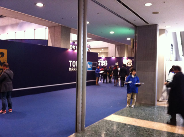【大会まで】 昨年がマラソン10年目だったこともあり、今シーズンはいつもとは違うシーズンを送っています。 運良く東京マラソンにも当選(弟二回大会以来、4年ぶり2回目)して、流れ的には東京で自己ベスト更新を狙う感じでした。 今シーズンは11月のつくばで3時間25分台の好タイムを出し、長かった低迷を脱し、その後も防府、勝田と連続して3時間半を切れて、こりゃ来シーズンは別大カテゴリー3に挑戦できるかも、という状態でした。 1月末の谷川ハーフでも自己ベストを更新し、ここまでは順調でしたが2月の赤羽ハーフでは体重増と向かい風で撃沈。 やはり痩せなきゃと思ったものの、蓄積疲労と花粉症の薬の副作用で体重は減らないまま挑むことになりました。 この体重でどこまで頑張れるか、せめて3時間半は切らなきゃ。 東京で自己ベスト更新のはずが、いつの間にか守りのレースになっていました。 受付はビッグサイト、たまたま木曜に休暇が取れたので雨の中行ってきました。 EXPOが開催されていましたが、あまり楽しむ気にはなれず、それでも会社で話題になっていることもあって人形焼きなどの土産物を買い込みました。 レース後も売ってはいましたがほとんど売り切れだったので、土産類はEXPOで買った方が良いです。 記念写真を撮れるコーナーなどもあり、好調なランナーなら楽しめそうです。 今年からなのか、計測チップ(RSチップ)が貰えるらしく、チップ収納ケース(キーホルダーにする)も売っていました。 チップは桜色で東京マラソンのロゴが入っていますから、持っているだけでもいい記念になるでしょう。 |
