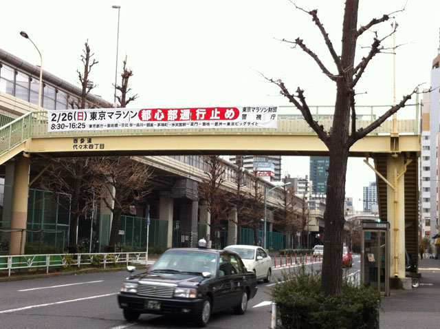 【レース内容】 当日は5時38分に目が覚めました。 風が出る予報でしたが、どうやら出ないで済みそうです。 昨日の予報では新宿で10m/sの風などと凄い予報が出ていて心配していたのですが杞憂で終わりそうです。 食事をして缶コーヒーを飲み、リュックに荷物を詰め込んで家を出ました。 どうせ新宿駅は混雑しているだろうからアップを兼ねてジョグをしながら会場へ行く作戦です。 終わったらすぐ帰るし、荷物は最小にしました。 新宿に近づくと向こうからはランナーがぞろぞろ。 警察車両もたくさん止まっていて、いつもとは違う雰囲気です。 7時47分に地下の通路に入りました。 一応簡単な荷物検査がありましたが、まあノーチェックのようなものです。 ここから先はランナーしか入れません。 カネゴンの仮装というかかぶり物の人がいて、大人気でした。 あそこまでいくと仮装というより本職はだし、まあ7時間大会だから見られる光景です。 地下の広場のような場所で荷物を預ける袋にまとめてしまい、防寒用の100円雨合羽を着てカイロを腰に貼り、外に出て荷物を預けます。 混雑でアップはできないので、ストレッチ程度しかすることはありません。 トイレには3回並んで、出し尽くしておきました。 たまたま居た場所でミールサービスをやっていたのですが、私の目前でバナナは売り切れになっちゃいました。 アミノバリューだけ頂いて、8時20分頃にスタートラインへ向かいます。 もうたくさんの人が並んでいます。 カッパを捨てる関係で右端(中央分離帯の横)に陣取りました。 寒いけど風はなく、マラソン日和です。 男性著名人(六本木なんとか)による国歌斉唱では一緒に歌っている人もいてびっくりしました。 石原都知事の挨拶はロレツがまわっていませんでしたが、単に寒かっただけのようです。 帰ってから見たテレビ番組の中ではしっかりしゃべっていました。 車いすの部がスタートしてからカッパを脱いで中央分離帯に突っ込みました。 遠くからは放り投げている人もいました。 マナー的には良くないけど、足下に置いて誰かが転ぶよりはマシです。 あと、スタートラインに雨合羽を置いていくこと自体がどうなのよ、とも言えるのですが、この大会に限っては都庁という非住宅地区であることと主催者の一部でもある東京都庁の目の前、さらには参加費を考えたらこの程度は許されるだろうと考えています。 勝手な論理ですが。 号砲ととものブシューという音がして、両側の何十本ものラッパから紙吹雪が吹き出されます。 私の位置でロスタイムは40秒でしたが、まだ紙吹雪はヒラヒラと舞っていて、脇の発射装置からはガスがシューシューと出ていました。 紙吹雪は4年前よりも大きくなったような気がしました。 陸連の部ならではの贅沢な光景、どうせなら10回ぐらい発射して後ろのランナーにも味あわせてあげればいいのに。 当初の予定通り、前回は靖国通りの下り車線を走ったので今回は右車線を走ることにしました(逆送する感じで)。 大ガードでの立ちションは私の位置からは見えなかったけど、きっといるんだろうなぁ。 調子はイマイチ、キレがない感じです。 キロ4分50秒から55秒を目指してみましたが、4km地点で速くも57秒、3時間半を切るには4分59秒で走らないといけないので、もう危険信号です。 その後も56秒前後と我慢のレースがはじまりました。 高校生時代に何度も通ったのが靖国通り、もちろん歌舞伎町で遊ぶようなお金も度胸もなかったのですが、まさかその道をこの年になってマラソンで走るとは、人生は分からないものです。 その後も4分56秒前後で推移し、14km地点で持参した塩飴を口にしました。 飴は6個持っていったのですが4つしか食べませんでした。 ゼリーは給食の豊富さを考えて小さい方の容器に2つ分入れて持っていきましたが、3分の1は余っていました。 気温的にも消耗は少なかったようです。 またバナナも3回ほど食べましたので、それも大きいかな。 給水はアミノバリュー、水の順でしたが、序盤と終盤はパスしました。 最近は序盤はリズムが狂うのと持って走る水の軽量化を兼ねて、序盤の給水はパスする傾向ですが、それでも十分間に合います。 風はなく長袖一枚で十分な気温、調子が良かったらいい記録が出そうな陽気なのですが。 中間地点で時計を見たら1時間39分と、明らかに間違った数値が表示されていました。 以前もあったのですが、時計が壊れていたようでレース後に修理に出しました(結局、新品と交換になった)。 面白いことに後でランナーズアップデートの5kmラップと照らしてみると、30km付近までは正常に計測されていて、別に中間点前で時計を止めたようなことにはなっていません。 でも、フィニッシュタイムは実時間より5分ほど短いという面白い誤動作です。 早くも右ふくらはぎと左太腿前部が傷んでいますが、足だけで走る悪いフォームなのでしょう。 もう3時間半を切るのだけが目標、自己ベスト更新どころじゃありま