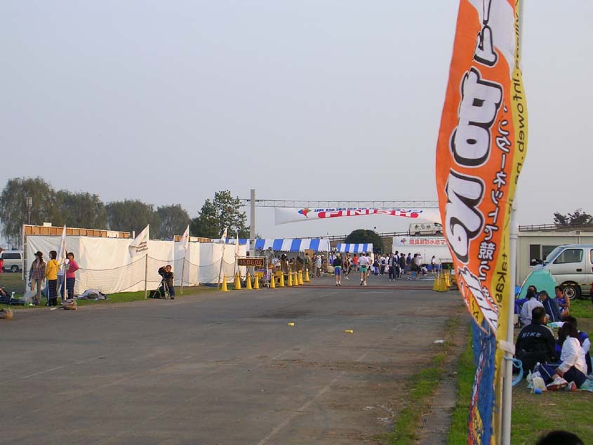 この大会は、フルでは珍しく当日エントリーができる大会です。 場所は埼玉・栃木・群馬・茨城に挟まれた渡良瀬遊水池、フラットなコースという話でしたが、今年からコースが変わったようです。 遊水池を2周するのですが、土手に登り下りする場所もあるし、荒川市民の方がフラットです。 ただ、土手の上を走ったりするので、荒川市民よりも景色はマシです。 しかし、河川敷よりも人は少ないので、声援は全く期待できません。 当日、4時に目が覚めました。 5時半に家を出て、東武伊勢崎線の柳生駅に着いたのが7時33分。 ここの駅だけでなく、数駅前から霧がたちこめていて、びっくりしました。 駅のベンチも濡れていました。 駅から1km程で会場に着きます。 フルで2000人規模の小ぶりな大会ですが、駅から会場までは案内看板もあるし、まず迷いません。 しかし、噂通り駅の周辺にはなんにもなかった。 家の近くで食料と飲み物を買っていって正解でした。 当日エントリーを済ませ、一人でボーッとしていました。 今日はMIB2さんと2人だけで、ちと寂しい。 今回は納得いく練習が出来ていないこともあって、これで5回目のフルだけど、フルはいまだに恐い。 この大会は1kmごとに距離表示がある(38kmからは「残り○キロ」の表示も)ので有難い。 最近買った腕時計に、目標タイムとの差を表示してくれる機能があることを知って、さっそく使ってみました。 目標タイムは、自己ベストより11分遅い4時間40分にセットしました。 ちょっと弱気ですが、4時間29分の自己ベストを更新できるような練習量ではなかったので、自己ベスト更新を狙いつつ、時計には現実的な数字を入れておきました。 天気は快晴、晴男の面目躍如です。 水分補給をしながら、なんだかお腹がすいてしまい、おにぎりをむしゃむしゃ食べました。(結果的には、これがよかった。なにしろ給食が悲惨だった) 一人で広げていた陣地を撤収して荷物を預けにいく途中でランナースさんとMIB2さんに会いました。ランナースさんは当日エントリーで10kmだそうです。 |